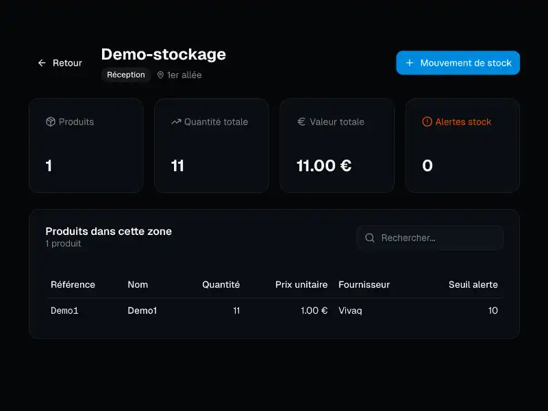 Vivaq est une solution SaaS de gestion logistique complémentaires aux ERP, conçue pour offrir une visibilité complète sur vos stocks, vos zones, vos camions et vos expéditions, sans la lourdeur des ERP traditionnels.