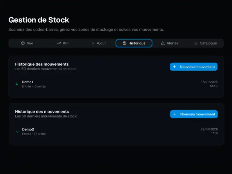 Historique total de tous vos mouvements de stocks, plus de mauvaise surprise !